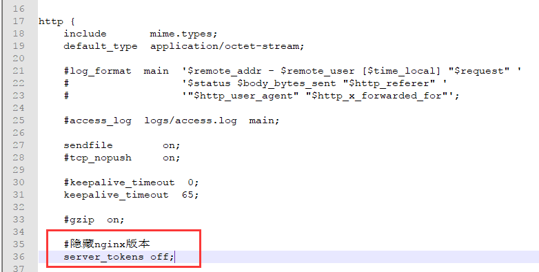 隐藏nginx版本号 如果nginx没有隐藏版本号,是很危险的,可以争对这个版本做对应的攻击,最好隐藏版本号