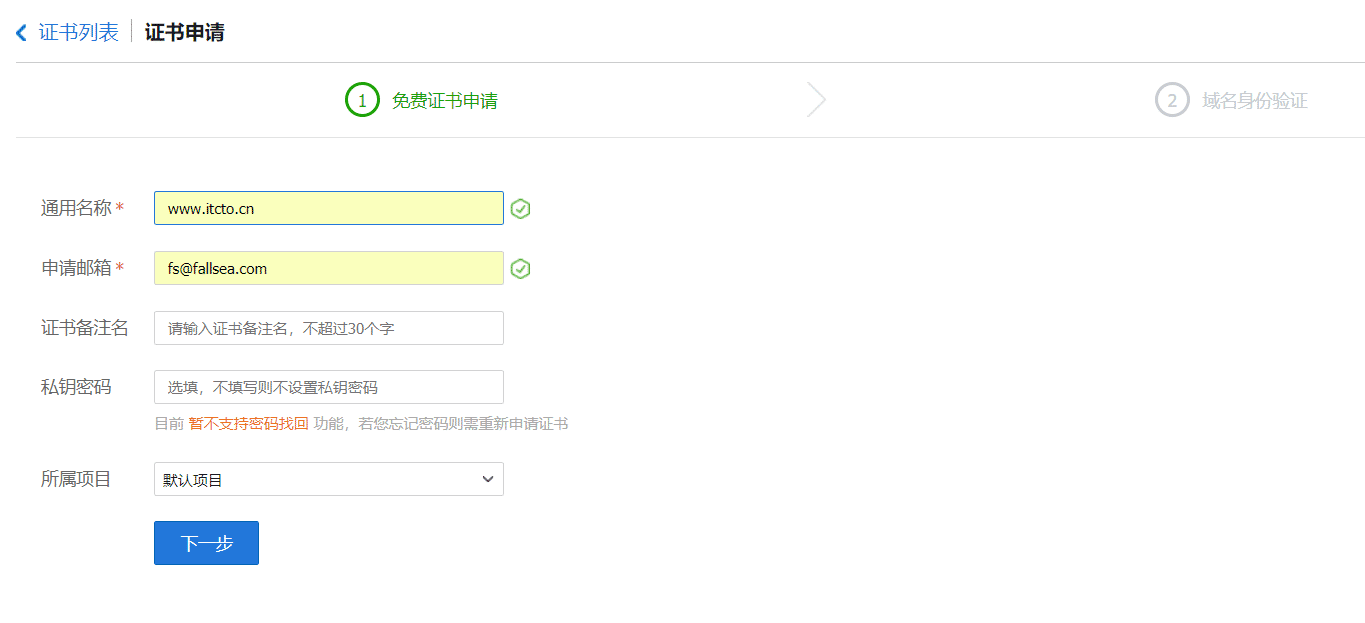 腾讯云申请免费证书,个人感觉腾讯云申请正式比较简单、也很快。